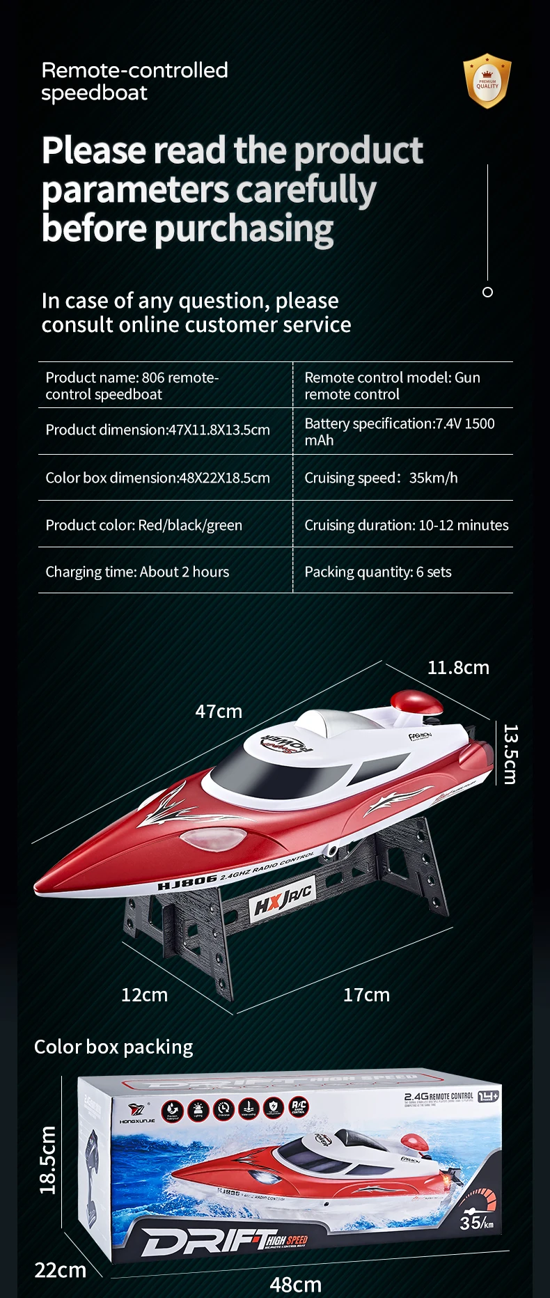 RC Speedboat 2.4G 35KM/H High Speed Electric Boats With Seal Waterproof  Motor Remote Control Racing Ship Outdoor Boats Toys